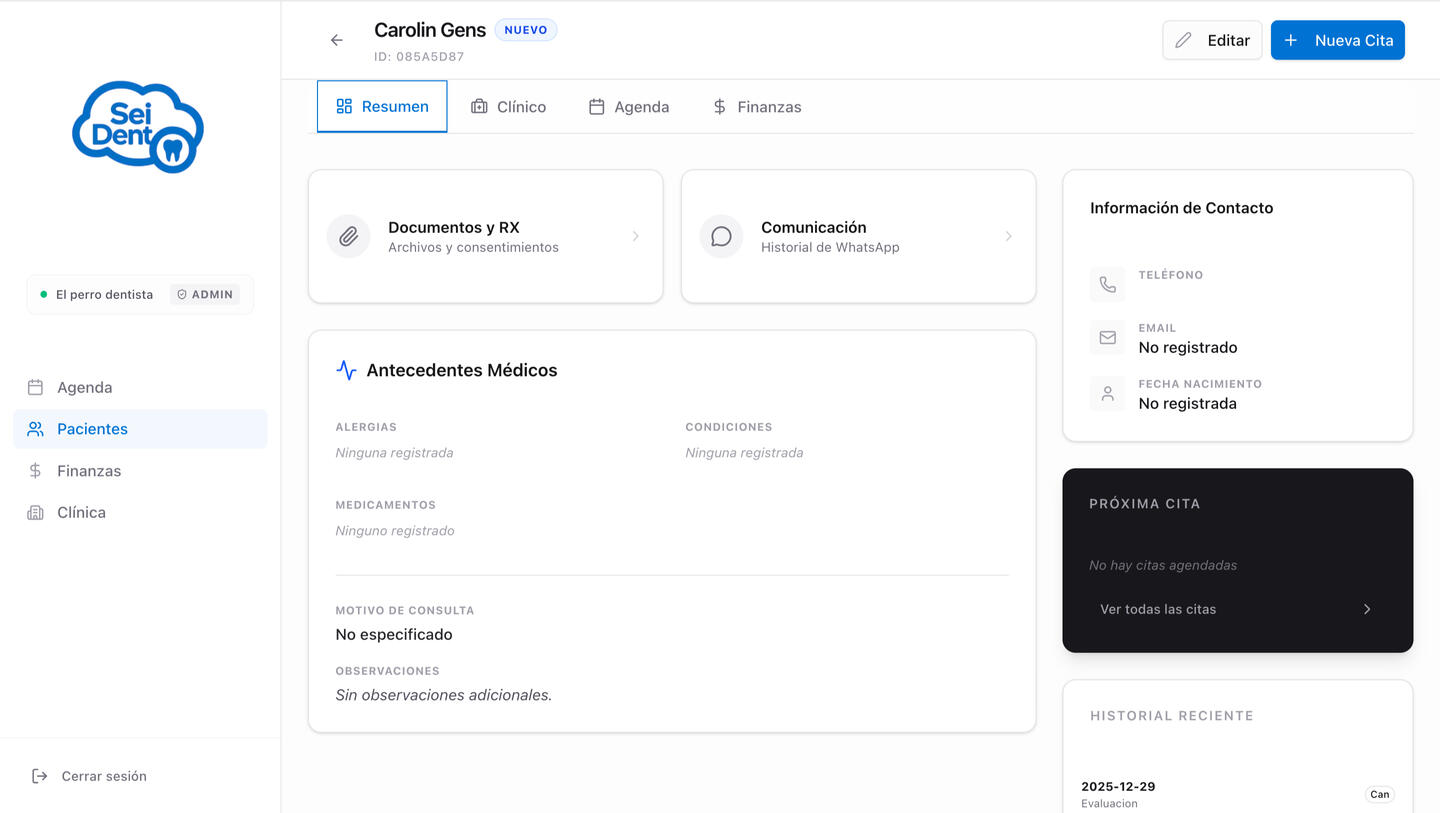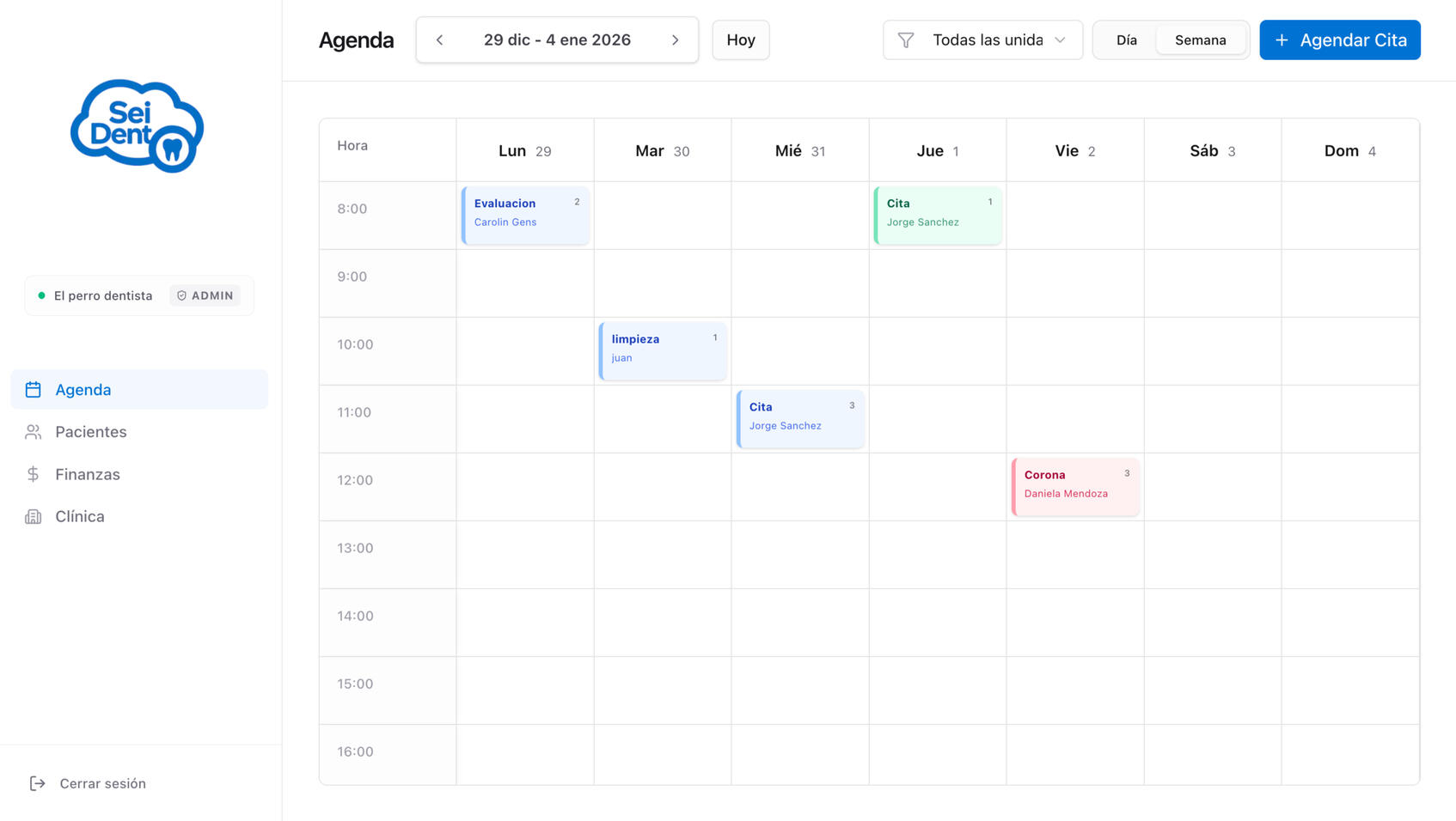 Sei Dent es el software dental que organiza tus citas, pacientes y reportes en un solo lugar. Fácil, rápido y diseñado para dentistas de hoy.