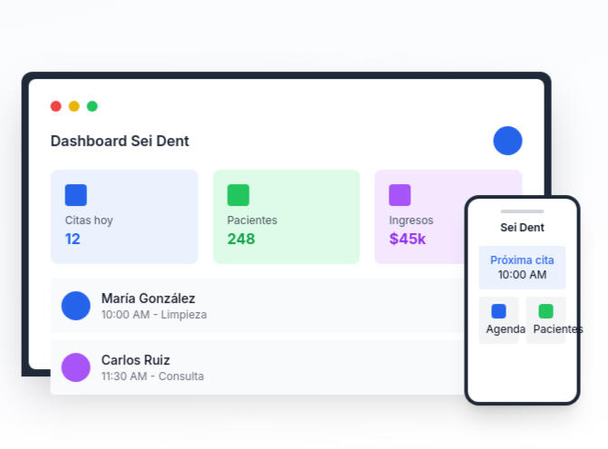 Sei Dent es el software dental que organiza tus citas, pacientes y reportes en un solo lugar. Fácil, rápido y diseñado para dentistas de hoy.
